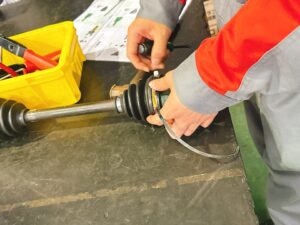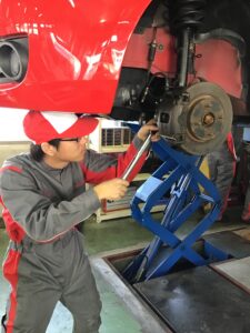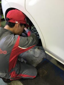 ドライブシャフトのブーツ交換や、スタビリンク脱着、F.Rブレーキの分解整備