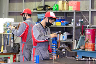「ガソリンエンジン」「ジーゼルエンジン」を比較しながら、その構造や機能を解明。エンジンに関する基礎から最新の機能を学び、整備技術を体得していきます。さらに日常点検や定期点検の基本、各部位の詳しい点検方法などについても学びます。自動車走行性能試験では、シャシダイナモメータを使って自動車を総合的に診断。あらゆる整備技術を学びます。